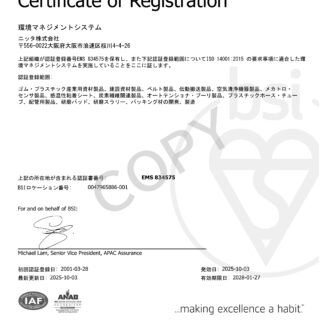 ニッタグループは、「NITTAグループ行動憲章」を定め「実践書」にて、労働安全衛生マネジメントシステム、環境マネジメントシステム、品質マネジメントシステムをCSR活動の一つとして明確に位置付けしました。 その上で、「品質・環境・労働安全衛生方針」を制定いたしました。 ニッタグループは今後も品質・環境・労働安全衛生の継続的改善を行うと共に、コンプライアンス(法令遵守)を常に念頭に置き、活動を進めてまいります。